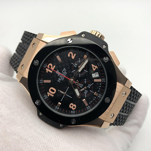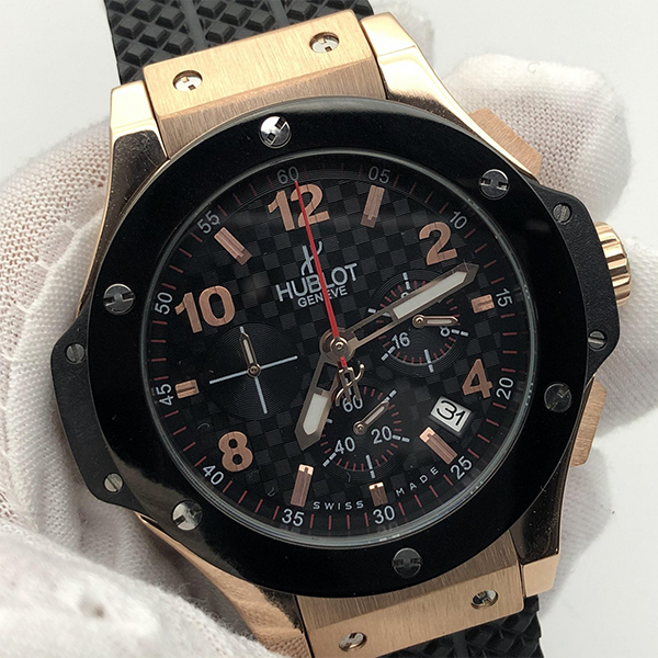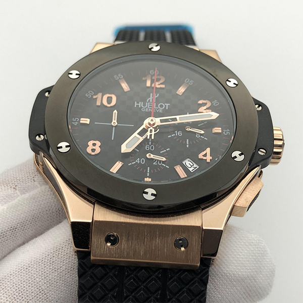 Bezel: Polished black ceramic, 6 titanium H-screws